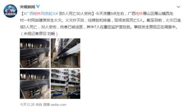 5月5日凌晨,广西师范大学漓江学院对面的一间6层民房发生火灾,造成5人死亡,27人烧伤。当日凌晨现场一片浓烟,居民们大多在睡梦中被尖叫声惊醒,因为发生在晚上,很多住户来不及逃亡,造成了重大的人员伤亡。一场大火让很多美好的生命就此终止,而这次火灾的又是电动车惹的祸。