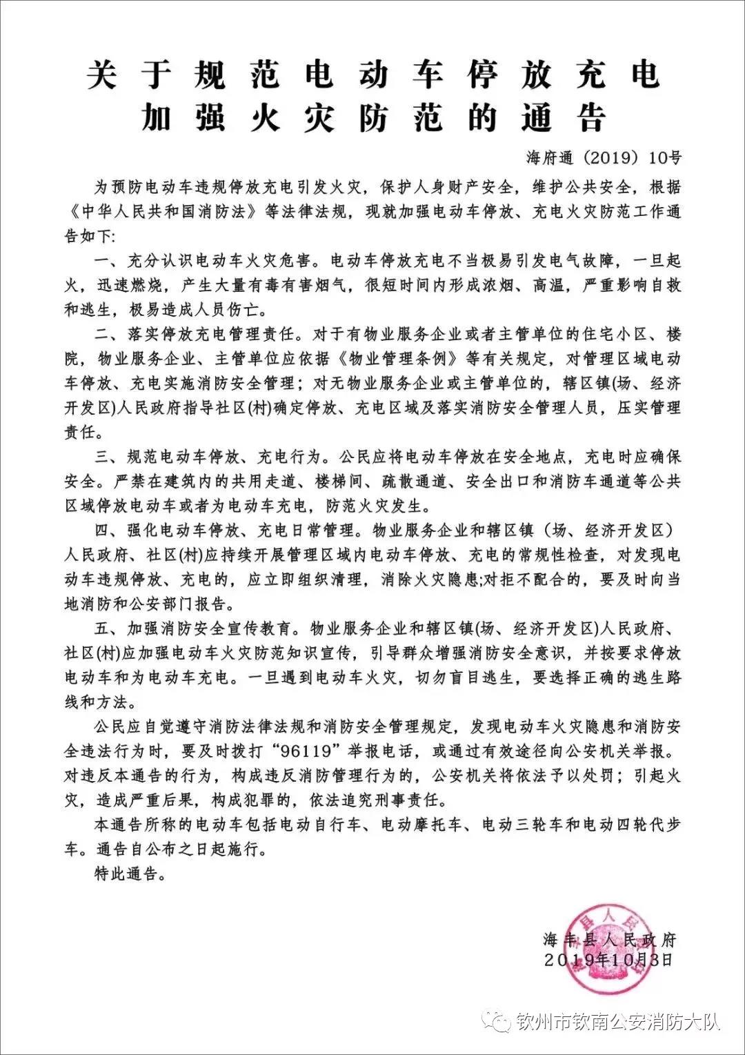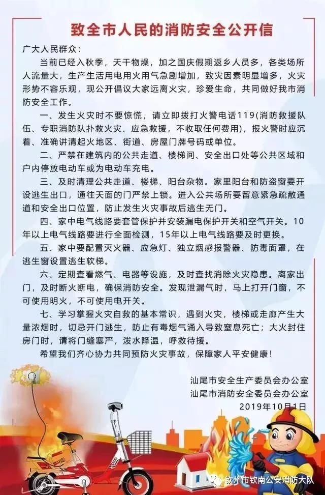 2019年10月1日4时许,广东省汕尾市海丰县城东镇一住宅楼发生火灾,着火面积约10平方米,造成5人死亡。起火建筑为七层居民楼,钢筋混凝土结构,占地面积约90平方米,建筑面积约600平方米,属村民自建的小产权房。经现场调查,起火部位为一楼楼梯间,初步认定起火原因为楼梯间内违规停放的电动自行车故障起火引发火灾。